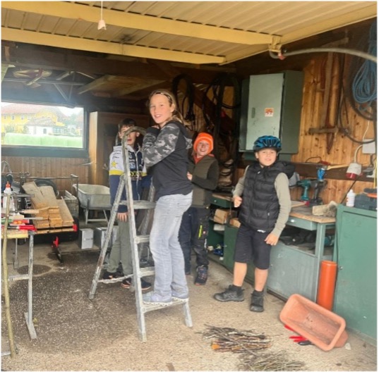 Wir, Elias, Maxi, Lukas, Marvin und Tobias, haben uns zusammengetan, um Futterhäuser für Vögel zu bauen, um diesen im Winter etwas Futter zu geben. Mit dem Holz von Maxis Vater und Ästen aus dem Wald von Lukas Familie konnten wir unseren Plan in die Realität umsetzen. Zusammen bauten wir jeden Freitag in unserer Freizeit an den Vogelhäusern weiter. Momentan sind wir noch beim Bauen der Futterhäuser. Außerdem haben wir eine Spendenbox für freiwillige Spenden in Form von Futter und Geld aufgestellt, damit wir die Vogelhäuser den ganzen Winter befüllen können.