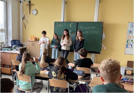 Im Rahmen des Freidays haben wir, Sophie, Simone, Laura und Paul, einen Workshop zum verantwortungsvollen Umgang mit Smartphones entwickelt, den wir bereits mit den vierten Klassen der Mittelschulen Eggelsberg, Geretsberg und Franking durchgeführt haben. Dabei geht es um Themen wie Bildschirmzeit, Kettenbriefe, Cybermobbing, Gefahren bei Handyspielen und den Umgang mit persönlichen Daten im Netz. Die Kinder hatten viel Spaß beim Workshop und wir bekamen viel positives Feedback.